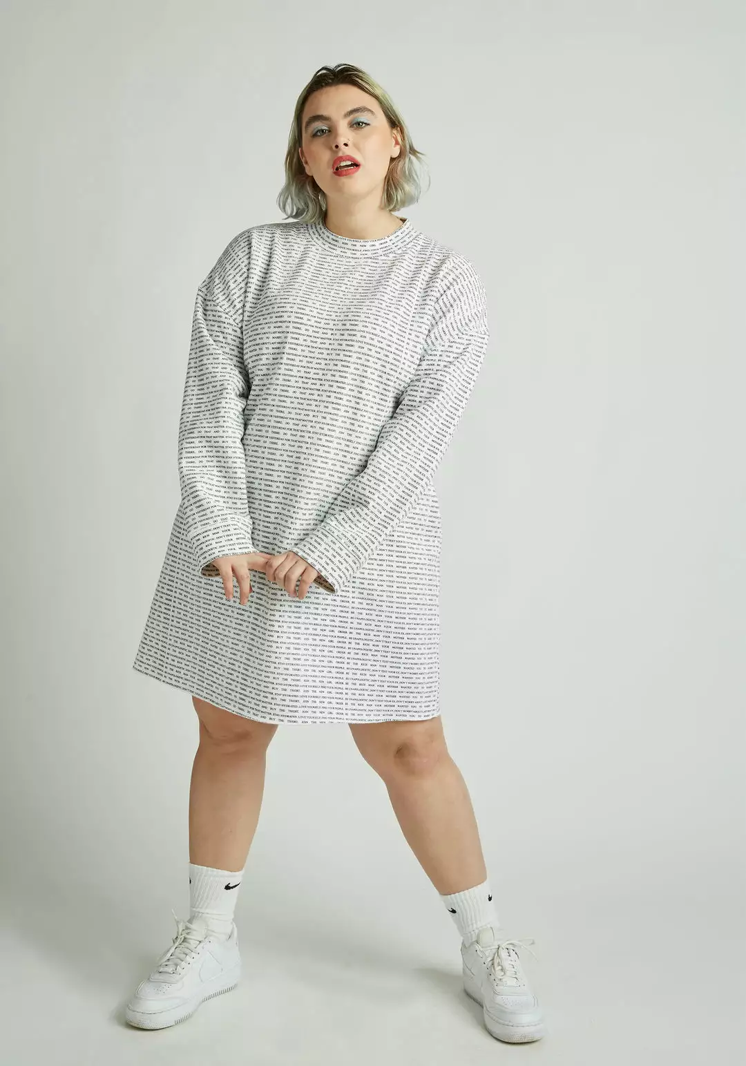 The New Girl Order sweatshirt dress is fantastic. It’s flattering, comfortable, and the manifesto print is so unique. I’ve already recommended it to all my friends.